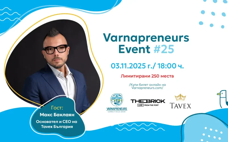 На 3 ноември 2025 г. пространството The Brick Port на Морска гара – Варна, отново ще се превърне в сцена за предприемачество, вдъхновение и споделен опит. Събитието Varnapreneurs #27 ще срещне варненската общност с Макс Баклаян – основател и изпълнителен директор на Tavex България, лидер на пазара на инвестиционно злато у нас.