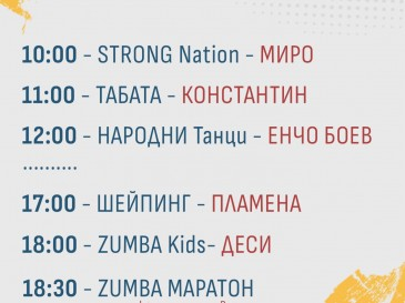 • 18:30 ч. – Zumba Маратон с инструктори от Варна