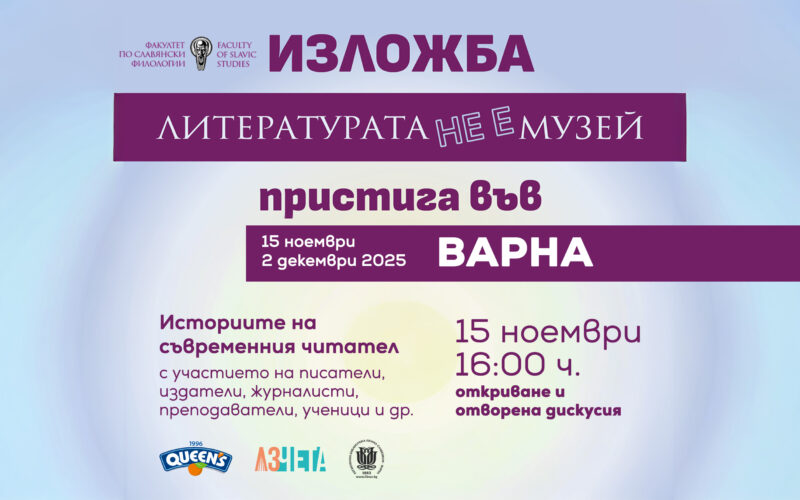На 15 ноември от 16:00 ч. във фоайето на Регионалната библиотека „Пенчо Славейков“ във Варна (бул. „Сливница“ № 34) ще бъде открита гостуващата изложба „Литературата не е музей“, създадена по инициатива на Факултета по славянски филологии на Софийския университет „Св. Климент Охридски“.