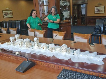 Заседателната маса бе преобразена от сръчните ръце на дамите от екипа на детското заведение в коледно градче – с малки и големи сгради със заснежени покриви и светещи прозорчета, пейки и беседки, централен площад, изпълнен с коледари, часовникова кула, висока сграда и мост – препратка към сградата на Общината и Аспарухов мост.