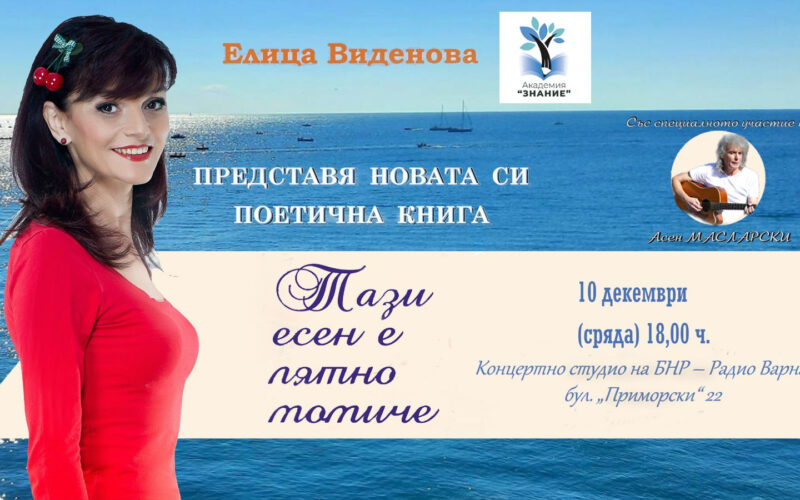 На 10 декември 2025 г., в Концертното студио на БНР – Радио Варна, бул. „Приморски“ 22, от 18.00 ч. поетесата Елица Виденова ще представи новата си книга „Тази есен е лятно момиче“. Събитието ще се състои със специалното участие на Асен Масларски, който ще допринесе с музикален акцент към поетичната вечер.