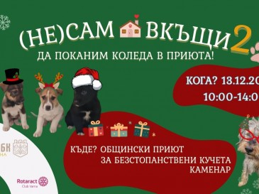 За втора поредна година в Общинския приют за безстопанствени кучета се организира коледната инициатива „(НЕ) Сам вкъщи“, посветена на всички четириноги обитатели на ОПБК – Каменар. Доброволците към Общински приют за безстопанствени кучета и „Ротаракт клуб Варна“ отново обединяват усилия, за да подарят топлина, внимание и надежда на кучетата, които все още очакват своето семейство. Както и миналата година, събитието се организира в навечерието на едни от най-светлите празници в нашия календар и ще се проведе на 13 декември (събота) от 10:30 ч.