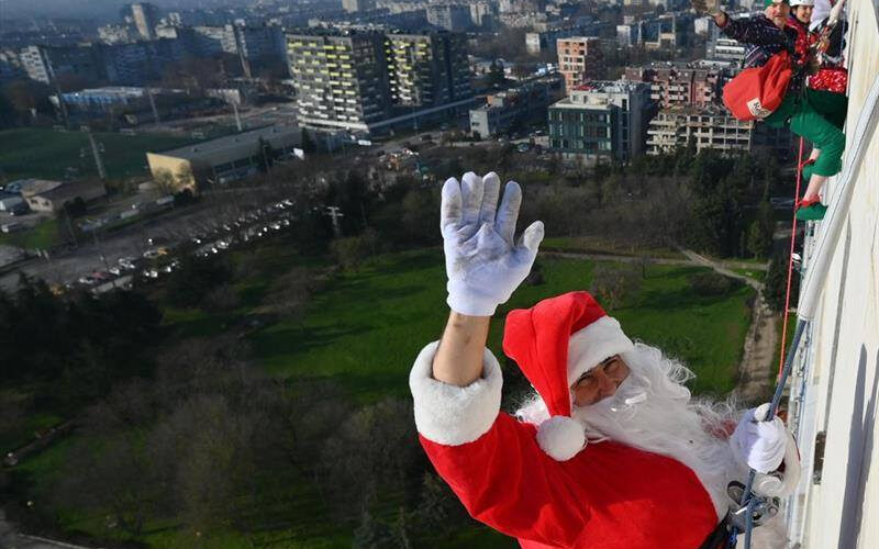 Белобрадият старец и неговите помощници се спуснаха по фасадата на болницата и изненадаха като във вълшебните приказки малчуганите. Раздадоха им подаръци и създадоха коледно настроение в клиниките.