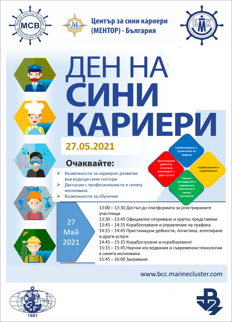 „Ден на сини кариери“ ще се проведе онлайн на 27 май 2021 г., от 13:30 до 16:00 часа…